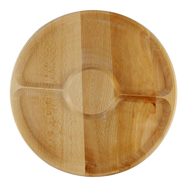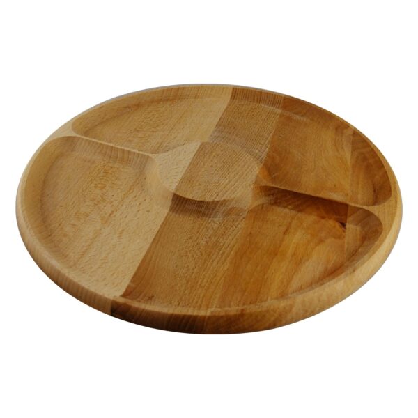 solidna taca z drewna bukowego na przystawki i zakąski podzielona na 2 przegrody