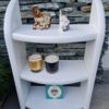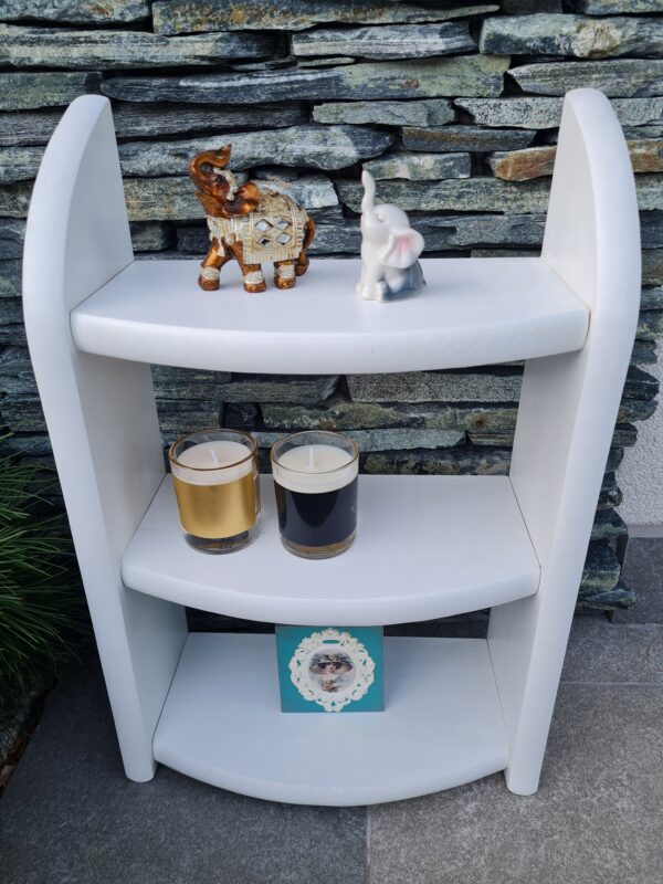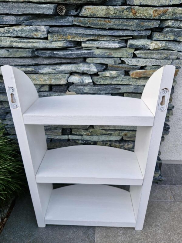Wymiary:  głębokość: 14,5 cm szerokość: 31 cm wysokość: 45 cm odstęp pomiędzy półkami:15 cm