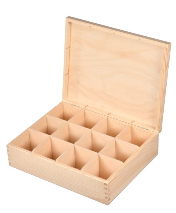 Drewniane pudełko na herbatę – Ekologiczny pojemnik z drewna z 12 przegrodami