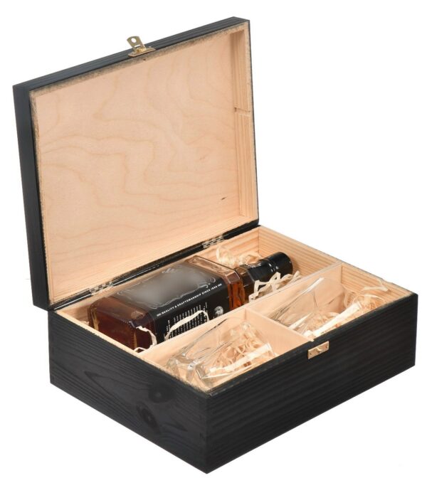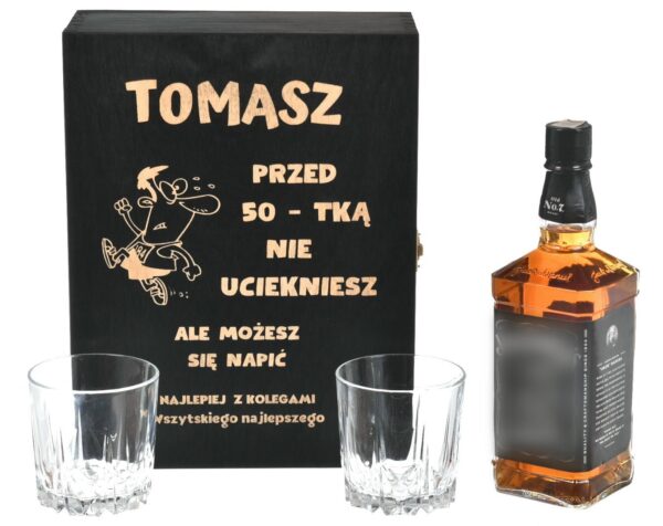 Drewniane pudełko na whisky szklanki prezent urodzinowy
