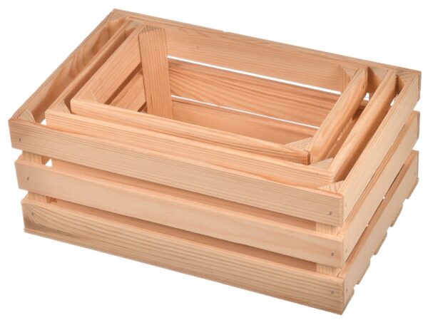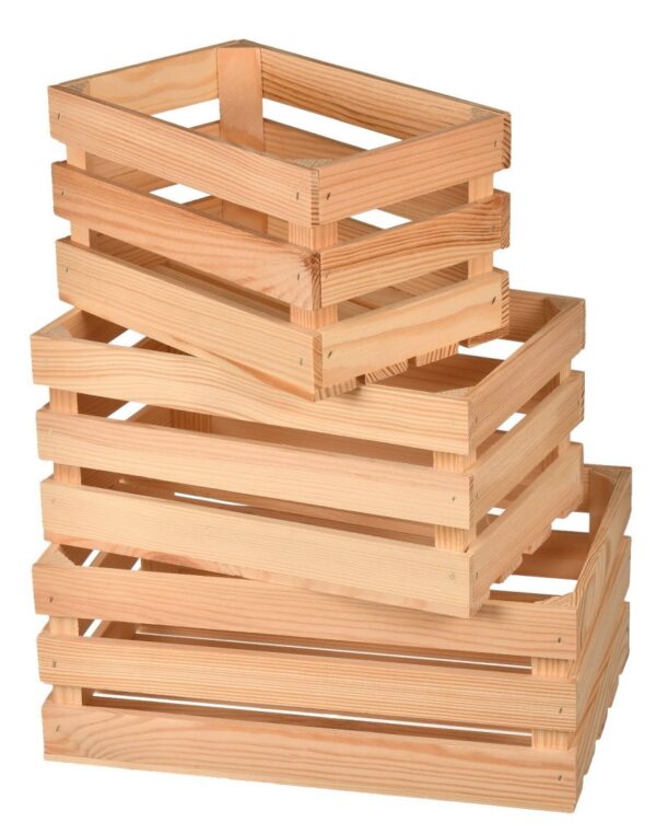 Drewniane trio skrzynek pozwoli zorganizować wolne miejsce w Twoim domu oraz zapanować nad zbędnym chaosem. Komplet trzech skrzynek od największej do najmniejszej to świetny pomysł na uporządkowanie drobnych przedmiotów, kosmetyków w łazience lub przypraw w kuchni. Skrzynki typu klatka mają szeroki wachlarz zastosowania w Twoim domu, pracowni, garażu lub piwnicy.