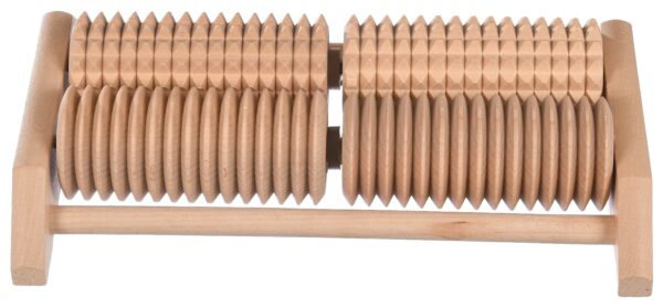 Masażer do stóp drewniany masujący dwoma rolkami na raz do lepszej stymulacji punktów, świetnie pobudza krążenie, specjalnie wyprofilowany, da Twoim stopom ulgę na długo.