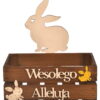 Duża drewniana skrzynka wielkanocna to doskonały wybór na dekorację wielkanocnego stołu, ale także świetny sposób na przechowywanie jajek, słodyczy czy drobnych upominków. Wykonana z wysokiej jakości drewna, skrzynka łączy w sobie klasyczny urok natury i nowoczesny design, tworząc elegancki dodatek do każdego wnętrza. Na jej powierzchni znajduje się uroczy zajączek wielkanocny, który dodaje całości wyjątkowego, świątecznego charakteru.