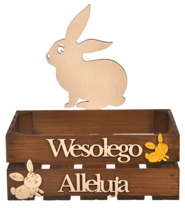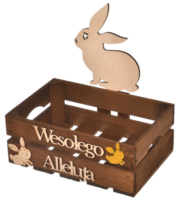 Wielkanocne akcesoria, takie jak ten koszyczek, to idealny sposób na wprowadzenie radosnej atmosfery do domu. Zajączek wielkanocny, subtelnie umieszczony na skrzynce, podkreśla magię tego wyjątkowego czasu w roku, a trwałość drewna sprawia, że będzie to ozdoba na lata. Z pewnością stanie się integralną częścią Twoich wielkanocnych tradycji, dodając niepowtarzalnego uroku każdej celebracji świąt.