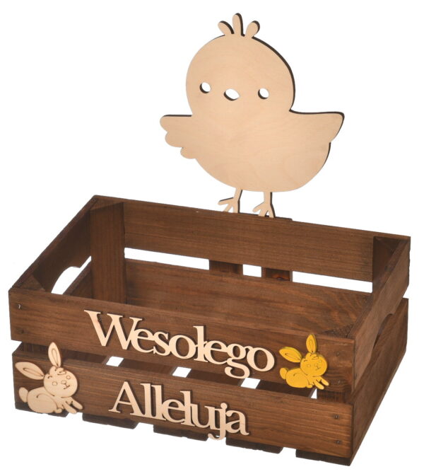 Duża drewniana skrzynka wielkanocna ozdoba koszyczek
