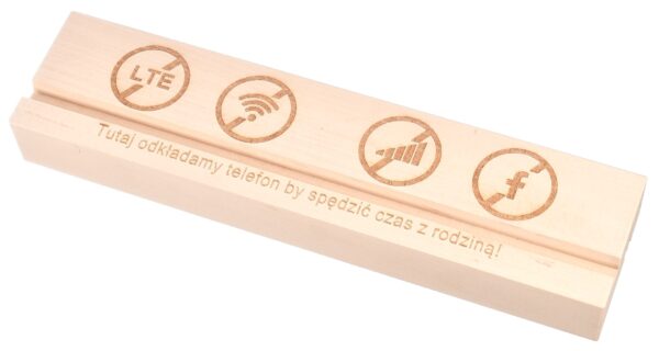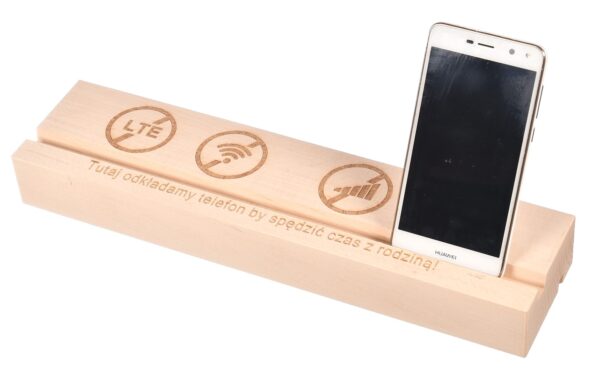 Coraz więcej czasu spędzamy przed ekranem telefonu, nie dostrzegając bliskich i znajomych wokół nas. Podstawka z grawerem powstała z myślą, by ważne chwile spędzać na rozmowie i zabawie z drugą osobą. Podczas kolacji, obiadu z rodziną odłóż telefon w bezpieczne miejsce jakim jest drewniana podstawka i ciesz się spędzoną wspólnie chwilą. Gruba, solidna podstawka wykonana z drewna bukowego. Widoczny na zdjęciu grawer nawiązuje do czasu bez Internetu, social medi oraz zasięgu.