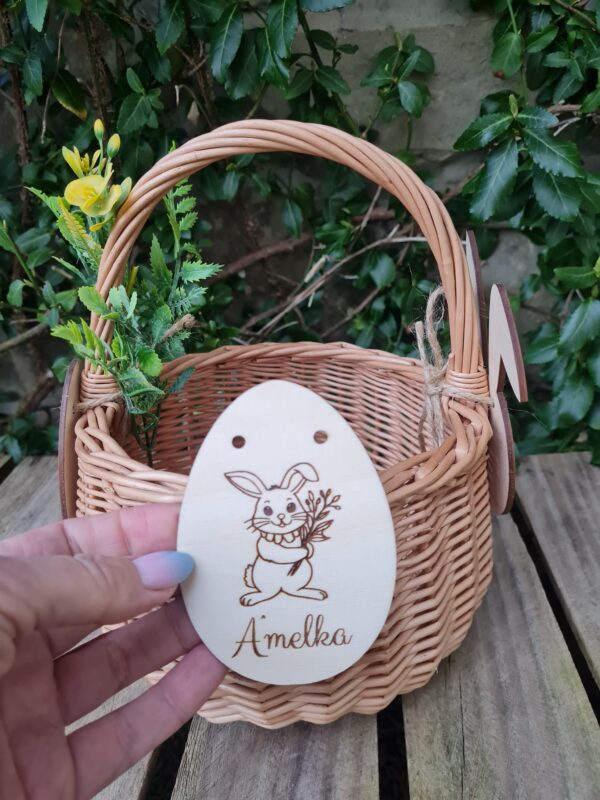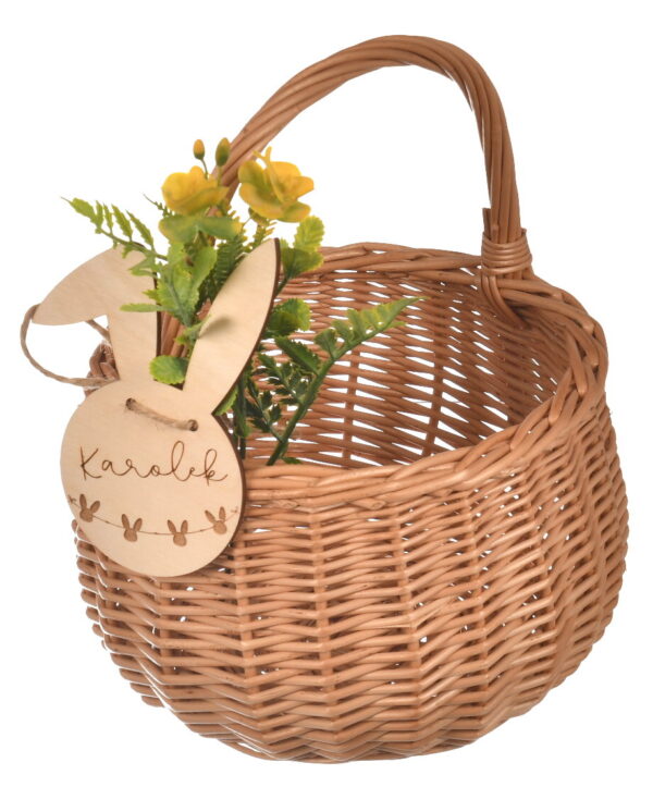 Personalizacja: Imię dziecka na koszyczku nadaje mu wyjątkowy, osobisty charakter. To pamiątka na długie lata, która będzie przypominać o pięknych chwilach spędzonych przy świętowaniu Wielkanocy.