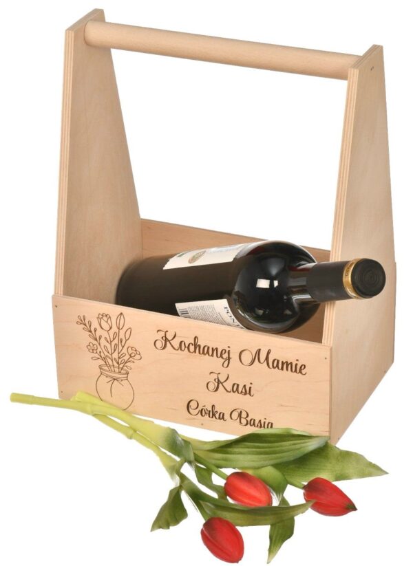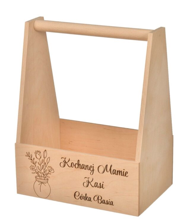 Drewniane nosidło na kwiaty i czekoladki to doskonały wybór na prezent dla mamy. Personalizowane grawerem, idealnie pasuje na Dzień Mamy, urodziny czy imieniny. Wykonane z trwałej sklejki, jest świetnym pomysłem na kosz prezentowy.