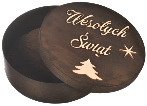 Okrągłe Drewniane Pudełko na Prezent Świąteczny