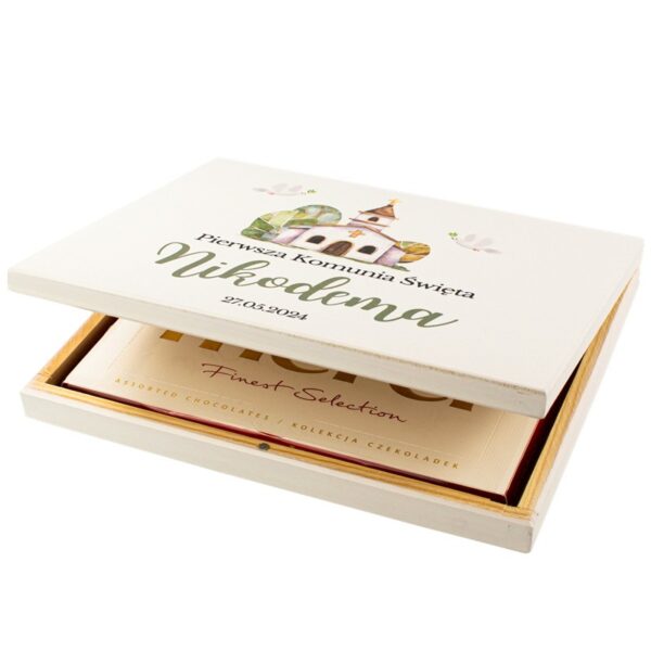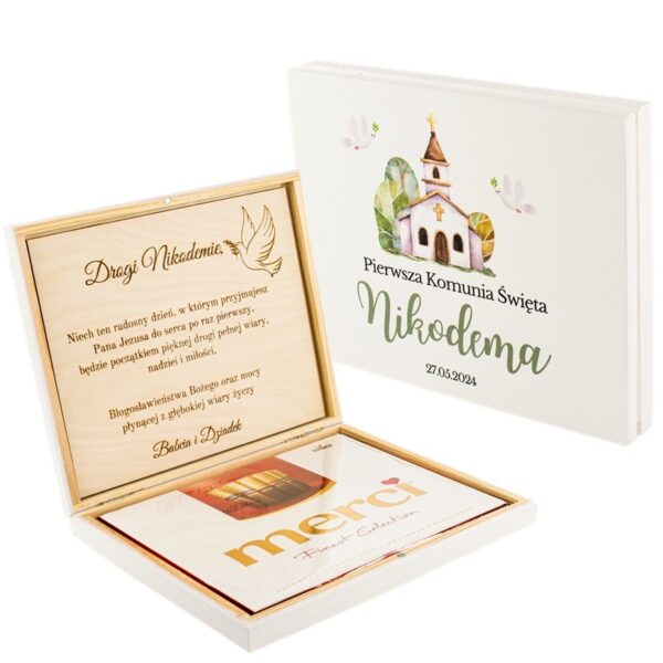Uchwyć niezapomniany moment Pierwszej Komunii Świętej z naszym wyjątkowym pudełkiem personalizowanym! Nasze Pamiątkowe Pudełko na Pierwszą Komunię Świętą z nadrukiem UV to idealny sposób, aby uczcić tę wyjątkową chwilę i uczynić ją jeszcze bardziej osobistą.
