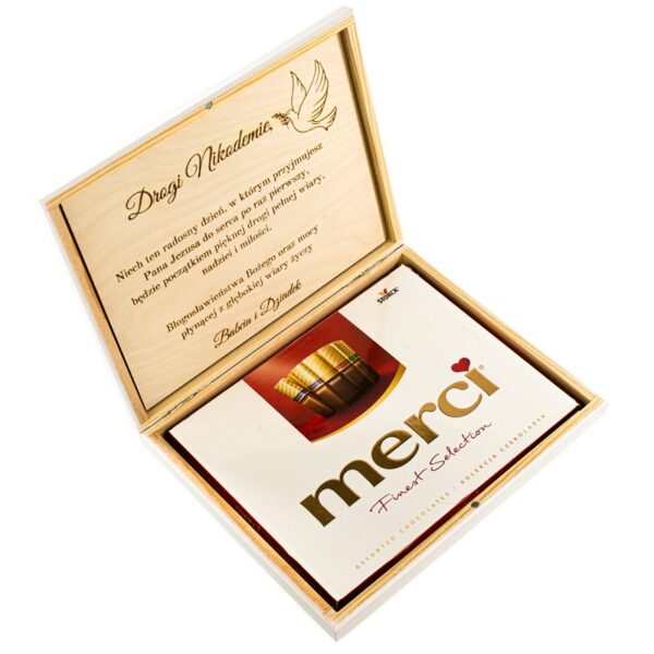 To niezwykłe pudełko nie tylko jest eleganckim nośnikiem pamiątkowym, ale także stanowi funkcjonalne opakowanie na drobiazgi, takie jak czekoladki, banknoty czy biżuteria – prezent od matki chrzestnej, który wyrazi nie tylko troskę, ale także szacunek dla ważnego etapu w życiu dziecka.