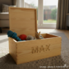 Mamy na to sposób. Drewniana skrzynka na zabawki z imieniem Twojego psa to połączenie trwałości z designem, który pasuje do każdego wnętrza.