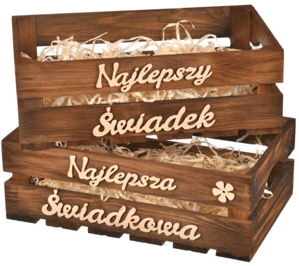Prezent dla Świadkowej i Świadka skrzynki z drewna