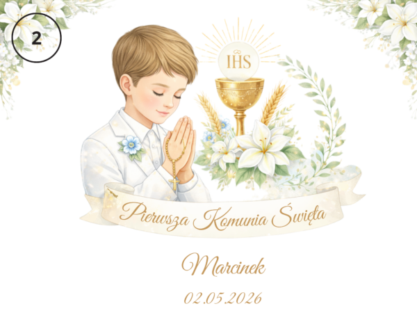 📏 Grawer laserowy imienia + motyw komunijny – personalizacja premium