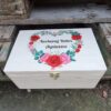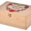 Naturalne drewno nadaje prezentowi ciepły, elegancki charakter i doskonale wpisuje się w tradycyjne wartości. Pudełko jest trwałe i praktyczne — po opróżnieniu może służyć jako schowek na drobiazgi, biżuterię lub pamiątki, przypominając o miłym geście przez długie lata.