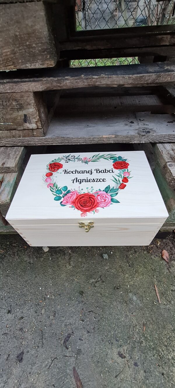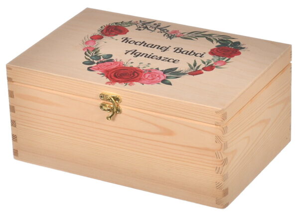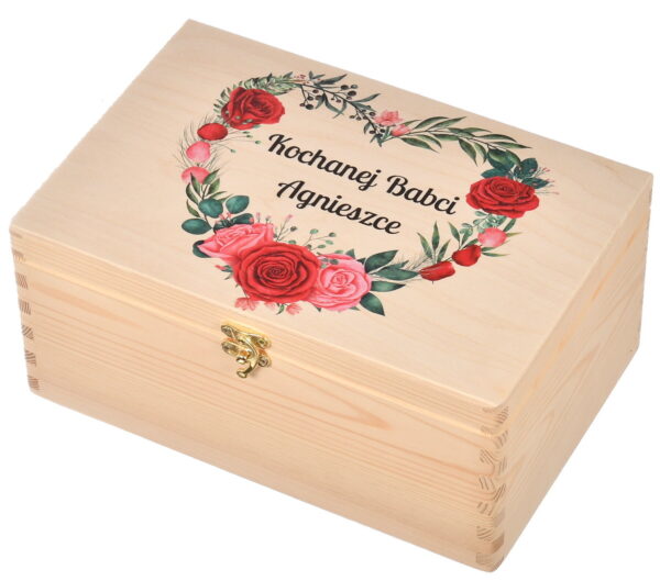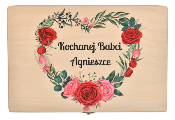 Personalizowane drewniane pudełko to coś więcej niż zwykłe opakowanie na prezent — to pamiątka pełna emocji. Umieszczenie imienia Babci sprawia, że upominek staje się wyjątkowy i niepowtarzalny, przygotowany specjalnie z myślą o niej. Taki detal pokazuje zaangażowanie i troskę, które Babcie szczególnie doceniają.