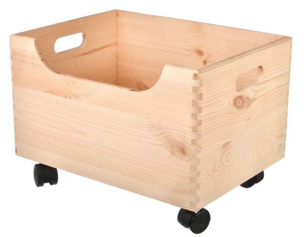 Prezentowana drewniana skrzynka na kółkach to produkt uniwersalny o wszechstronnym zastosowaniu, który możesz wykorzystać w dowolnie wybrany sposób. Spełnia nie tylko swoje praktyczne, ale także dekoracyjne funkcje. Sprawdzi się doskonale zarówno jako element wyposażenia wnętrz, jak i ogrodu czy tarasu, który wkomponuje się wspaniale w styl skandynawski. Skrzynka z drewna stanowi idealny pojemnik na warzywa i owoce, dzięki któremu w prosty sposób je posegregujesz, a ponadto możesz wykorzystać ją także do przechowywania drobiazgów  , małych prezedmiotów w domu.