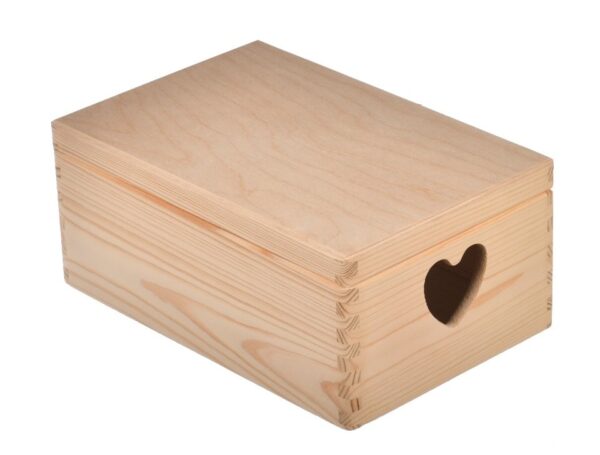 Pudełko drewniane z uchwytem w kształcie serca 30×20 cm to harmonijne połączenie praktyczności i estetyki. Jego naturalny design i ekologiczne materiały sprawiają, że jest to idealny wybór dla osób poszukujących stylowych i funkcjonalnych rozwiązań do swojego domu. Dodaj odrobinę natury do swojego wnętrza i ciesz się pięknem surowego drewna na co dzień.