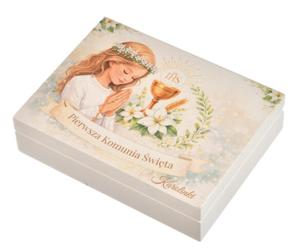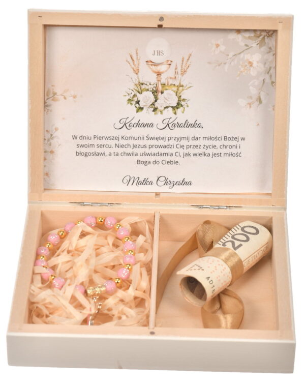 Drewniane Pudełko na Pieniądze i Prezent. Pamiątka Komunii