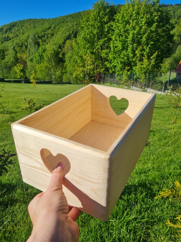 Kupno drewnianej skrzynki z uchwytami w kształcie serc to doskonały wybór z kilku powodów: