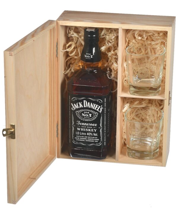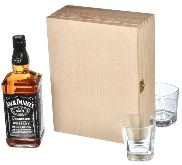 Skrzynka drewniana na whisky i 2 szklanki
