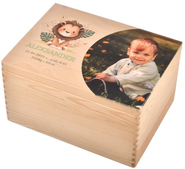 5. Estetyka: Drewno ma naturalny, ciepły wygląd, który pasuje do różnych stylów wnętrz. Drewniane pudełko z personalizowanymi detalami i zdjęciem dziecka może być piękną ozdobą pokoju dziecięcego.