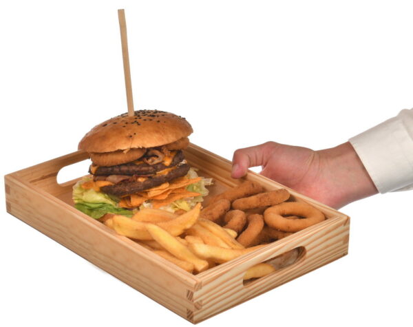 Funkcjonalność – Taca jest dostosowana do serwowania burgerów i frytek, zapewniając wygodę zarówno dla personelu, jak i klientów. Dzięki odpowiedniej wielkości i kształtowi, produkty są odpowiednio prezentowane i łatwe do przenoszenia.