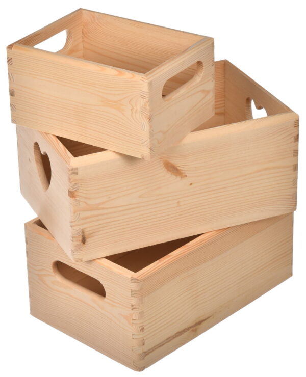 Zestaw trzech drewnianych skrzynek, idealnych do przechowywania lub pakowania prezentów! Wykonane z trwałego drewna, zachwycają naturalnym wyglądem i uniwersalnym stylem. Doskonałe do dekoracji, organizacji i wielokrotnego użytku. Praktyczne, eleganckie i ekologiczne rozwiązanie w atrakcyjnym pakiecie!
